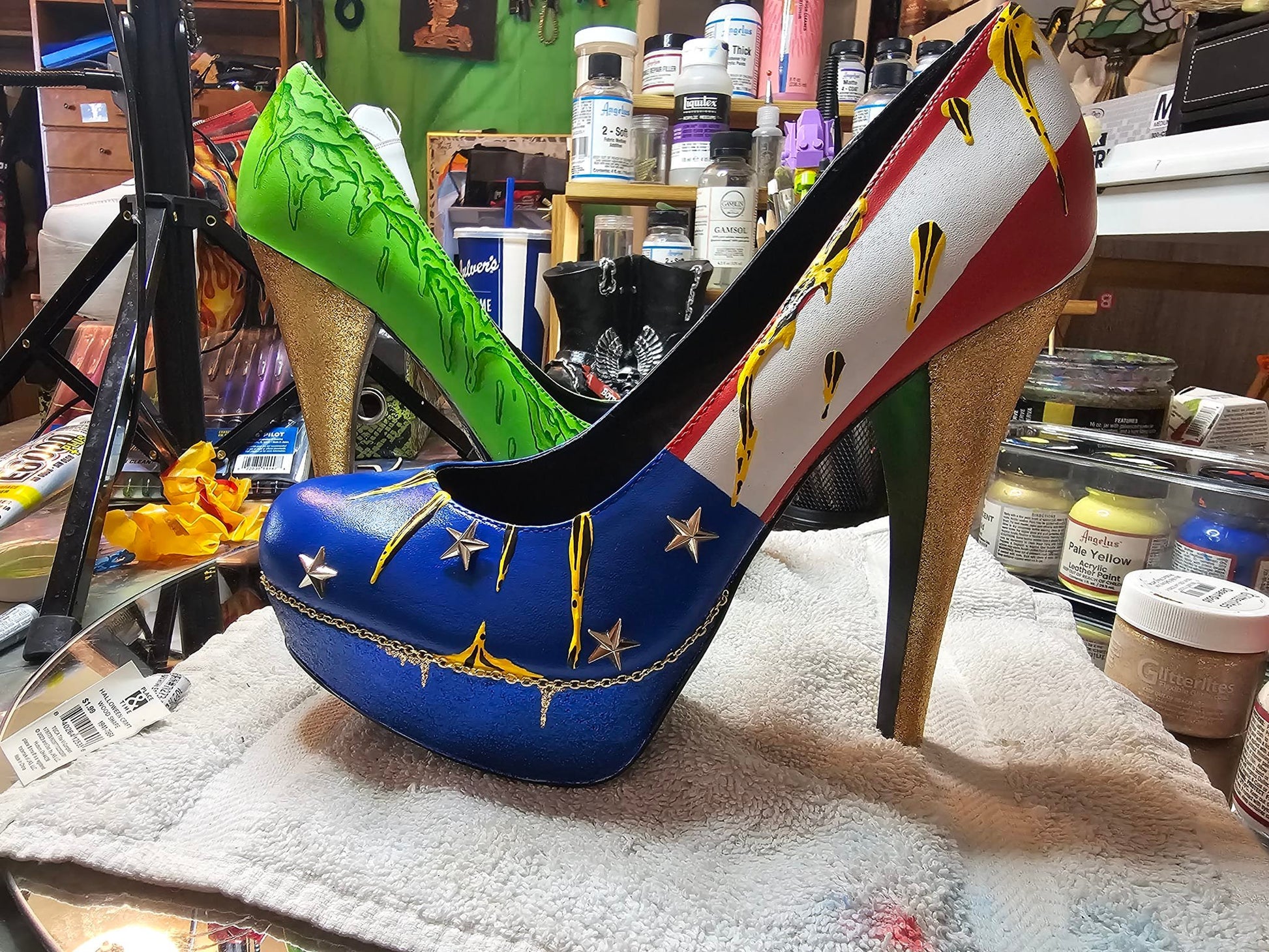 "American Slime” — Custom Painted Patriotic Heels That Ooze Attitude OOAK